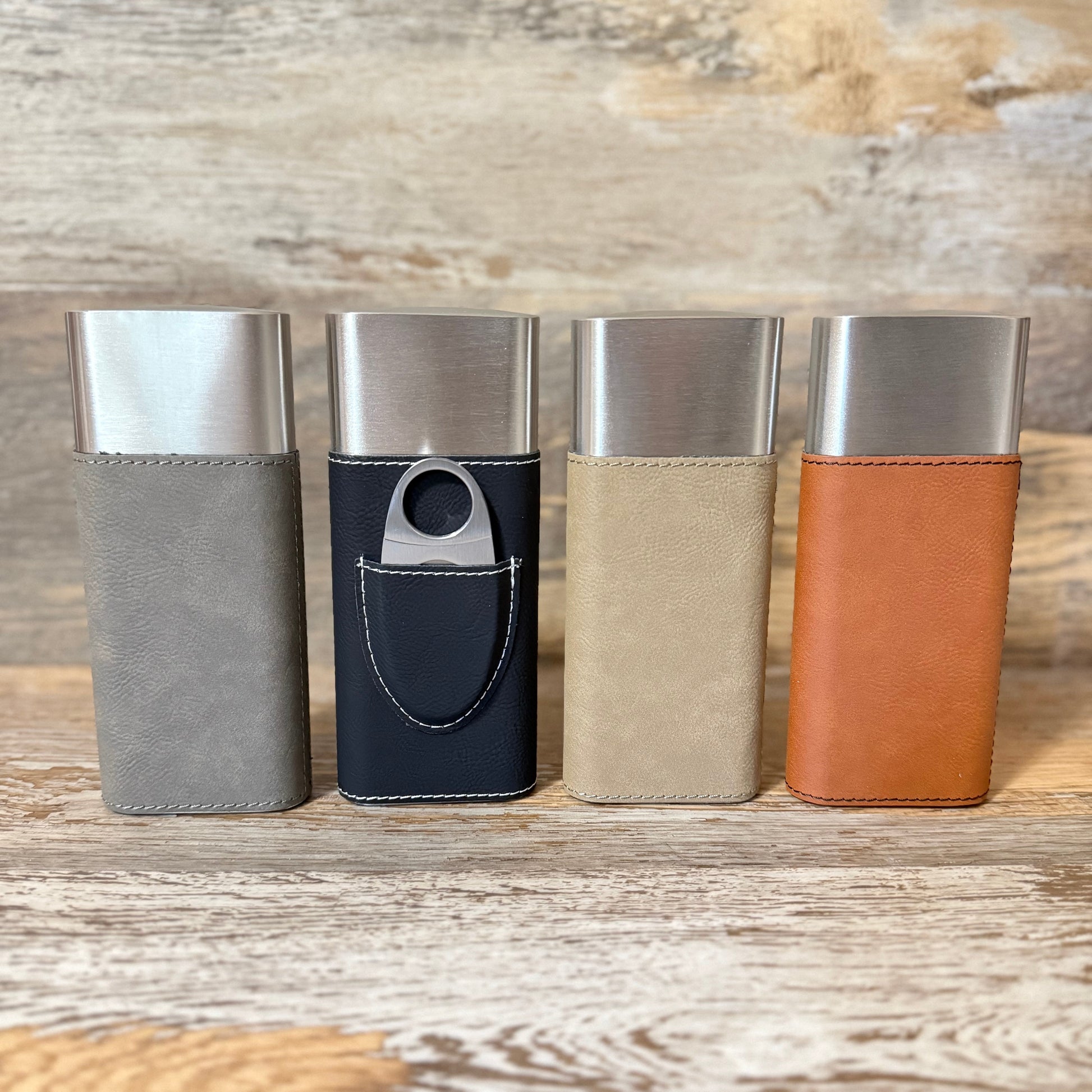Add a touch of class to your lineup with this compact leatherette cigar holder blank—crafted to hold three cigars and designed with laser engraving in mind.